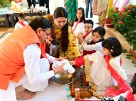 रामनवमी : मुख्यमंत्री धामी ने सपरिवार पूजा-अर्चना की, मां दुर्गा की प्रतीक नौ कन्याओं का पूजन किया