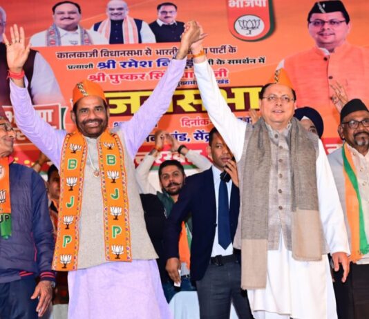 मुख्यमंत्री धामी ने दिल्ली में भाजपा की डबल इंजन सरकार को समर्थन देने की करी अपील … कहा -कांग्रेस और आम आदमी पार्टी दोनों...