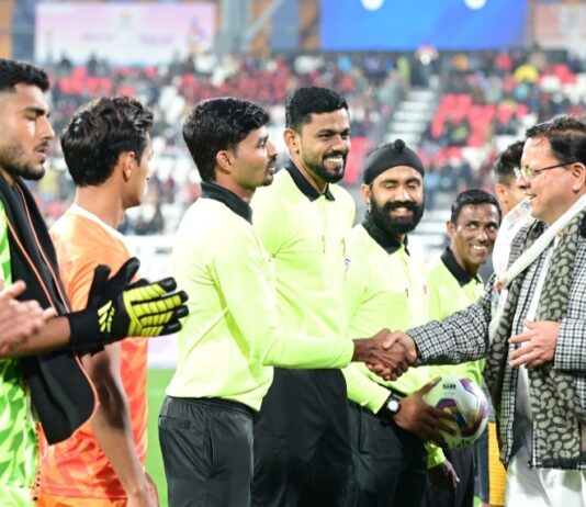 38वें राष्ट्रीय खेल … सीएम धामी ने व्यवस्थाओं का किया निरीक्षण … फुटबॉल मैच देखा और खिलाड़ियों का मनोबल बढ़ाते हुए उत्साहवर्धन भी...