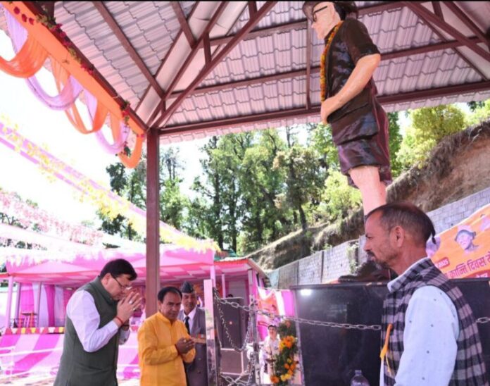 थलीसैंण (पौड़ी)। मुख्यमंत्री पुष्कर सिंह धामी ने पेशावर कांड की वर्षगांठ पर विकासखण्ड थलीसैंण के पीठसैंण में आयोजित राजकीय क्रांति दिवस मेले में प्रतिभाग किया। इस मौके पर उन्होंने स्वतंत्रता संग्राम सेनानियों के योगदान को याद करते हुए कहा कि आजादी के वीर सिपाहियों के त्याग और बलिदान के कारण आज हम खुली सांस ले पा रहे हैं। उन्होंने कहा प्रदेश सरकार स्वतंत्रता संग्राम सेनानियों और देश की रक्षा में बलिदान देने वाले वीर जवानों के परिजनों के लिए कई कल्याणकारी योजनाएं संचालित कर रही है।