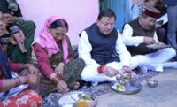 भोजन के लिए आपदा प्रभावितों के बीच जमीन पर बैठे मुख्यमंत्री धामी तो बुजुर्ग महिलाओं ने धामी को अपने हाथों से भोजन कराया और खूब आशीर्वाद दिया।