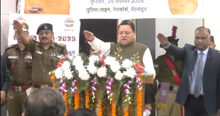 देहरादून। ‘राष्ट्रीय विधि दिवस’ के अवसर पर आयोजित कार्यक्रम में पहुंचे मुख्यमंत्री पुष्कर सिंह धामी। पुलिस और आमजन को दिलाई संविधान की शपथ। प्रदेश में सीएम धामी के नेतृत्व में सुदृढ़ हुई है कानून व्यवस्था।