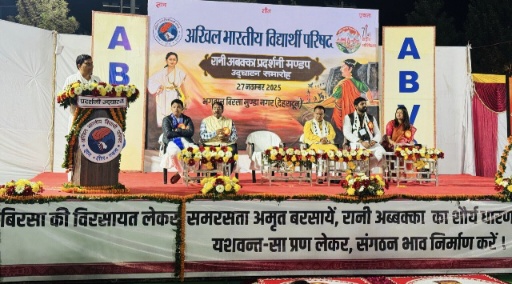 अखिल भारतीय विद्यार्थी परिषद के राष्ट्रीय मंत्री आदित्य तकियार ने उद्घाटन समारोह में सभी का स्वागत करते हुए कहा कि,” देवभूमि उत्तराखण्ड की इस पावन धरा पर कल से अभाविप का राष्ट्रीय अधिवेशन प्रारम्भ होने जा रहा है। भारत भूमि सदैव वीरों की भूमि रही है और इसी वीरता का अद्भुत उदाहरण हमें महारानी अब्बक्का के जीवन में मिलता है। राष्ट्रीय अधिवेशन हेतु बसाए गए ‘भगवान बिरसा मुंडा नगर’ परिसर में स्थापित प्रदर्शनी को वीरांगना रानी अब्बक्का के नाम पर समर्पित किया गया है। इस प्रदर्शनी में उत्तराखण्ड की उदात्त संस्कृति, स्वातंत्र्यवीर सपूतों, महापुरुषों तथा विविध समसामयिक विषयों की प्रेरक झलक देखने को मिलेगी।”