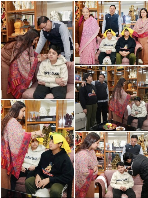 देहरादून। बसंत पंचमी के पावन एवं मांगलिक अवसर पर मुख्यमंत्री पुष्कर सिंह धामी के छोटे बेटे प्रभाकर का कर्णवेध संस्कार (कर्ण छेदन) वैदिक विधि-विधान से संपन्न हुआ। इस विशेष संस्कार को लेकर प्रभाकर स्वयं भी अत्यंत उत्सुक, प्रसन्न और जिज्ञासु था, जिससे यह पल और भी स्मरणीय बन गया। कर्णवेध संस्कार में प्रभाकर को दादी (आमा), पिता, मां, बड़े भाई दिवाकर सहित परिवार के सभी बड़ों का आशीर्वाद मिला।