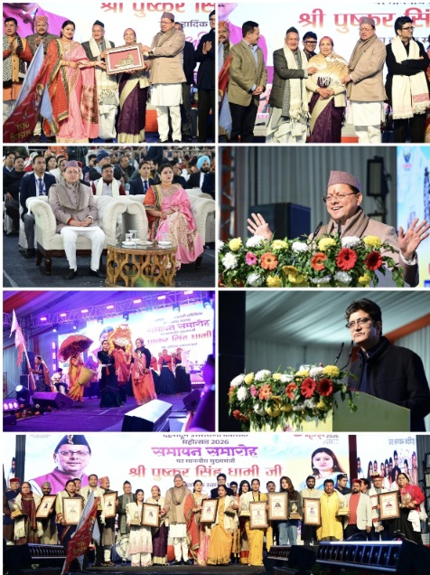 देहरादून। मुख्यमंत्री पुष्कर सिंह धामी आज परेड ग्राउंड में सेवा संकल्प फाउंडेशन द्वारा आयोजित चार दिवसीय उत्तरायणी कौथिक महोत्सव के समापन कार्यक्रम में सम्मिलित हुए। इस अवसर पर उन्होंने कार्यक्रम में उपस्थित लोक कलाकारों, साहित्यकारों, कला-प्रेमियों एवं बड़ी संख्या में उपस्थित जनता का स्वागत एवं अभिनंदन किया।