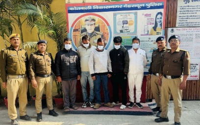देहरादून। अपराधियों के हर पैंतरे को नाकाम करती दून पुलिस … किडनैपिंग और फिरौती के खेल का किया पुलिस ने अंत, चंद घंटों में ही पुलिस की गिरफ्त में आये शातिर अभियुक्त। युवक को किडनैप कर फिरौती मांगने वाले 05 अभियुक्तों को पुलिस ने किया गिरफ्तार। अभियुक्तों द्वारा युवक को घर से किडनैप कर अपहर्ता की मां से की थी 01 लाख रू0 की डिमाण्ड।