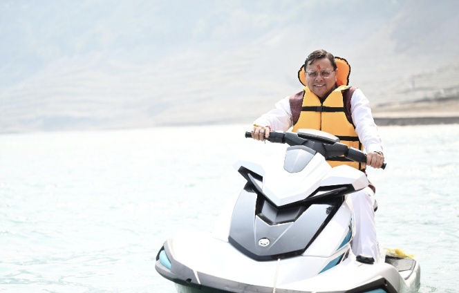 टिहरी। लाइफ जैकेट पहने सीएम पुष्कर सिंह धामी शुक्रवार को जब टिहरी झील के करीब पहुंचे, तो उनके पास दो विकल्प थे। या तो वह अपने मंत्रिमंडल के सहयोगी सुबोध उनियाल और अपने विधायक साथियों के साथ पहले बोटिंग करते या फिर एक गाइड के साथ अकेले ही जेट स्की का आनंद लेने निकल पड़ते। उन्होंने जेट स्की पर हाथ आजमाना चुना और निकल पडे़ रोमांच के सफर पर। बाद में उन्होंने बोटिंग भी की।