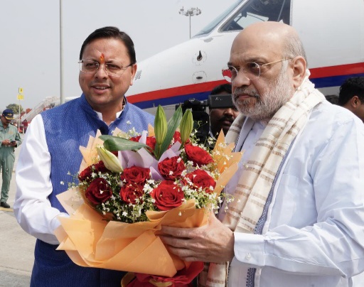 देहरादून। केंद्रीय गृह एवं सहकारिता मंत्री अमित शाह के देवभूमि उत्तराखंड आगमन पर आज जॉलीग्रांट एयरपोर्ट पर मुख्यमंत्री पुष्कर सिंह धामी ने उनका स्वागत किया। मुख्यमंत्री धामी ने पुष्पगुच्छ भेंट कर केंद्रीय गृह मंत्री का अभिनंदन किया। केंद्रीय गृह मंत्री अमित शाह अपने दौरे के दौरान हरिद्वार में आयोजित विभिन्न कार्यक्रमों में प्रतिभाग करेंगे तथा राज्य सरकार द्वारा आयोजित प्रदर्शनी का अवलोकन भी करेंगे।